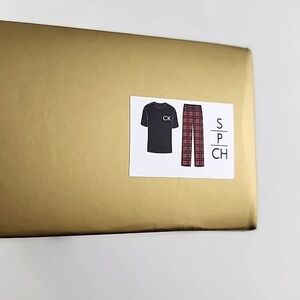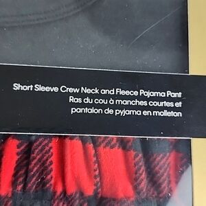 New with tags, Calvin Klein Sleepwear 2-piece pajama gift set which includes black short sleeve crew neck t-shirt top & red black plaid super soft fleece pajama pant, size small.