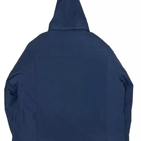 Calvin Klein 3-in-1 Jacket featuring a water-resistant outer shell with an integrated hood and a cozy, quilted inner jacket with a comfortable high collar. There is a small cosmetic detail visible in one of the photos.