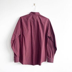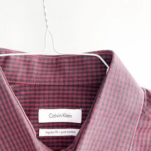 This men's button-down shirt from Calvin Klein is the perfect addition to any wardrobe. Featuring a classic micro check pattern with a regular fit and a stylish port red and black color palette, this shirt will keep you looking sharp and confident no matter the occasion. With a comfortable 16 sizing, you'll feel great all day long.