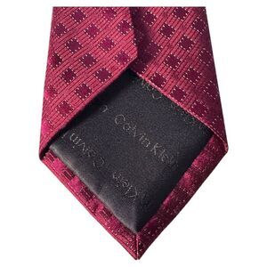 Keywords: Calvin Klein tie, mens tie, silk blend tie, burgundy tie, geometric tie, dress tie, formal wear, business accessory, wedding tie, evening wear, patterned tie, necktie