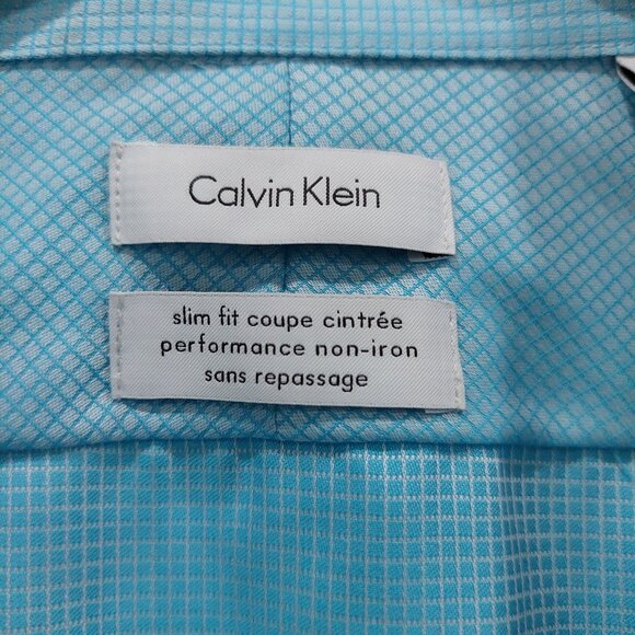 Calvin Klein Men's Slim Fit Button Down Shirt Blue Check Sz 16 1/2, 32/33
