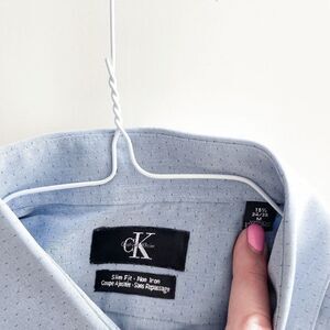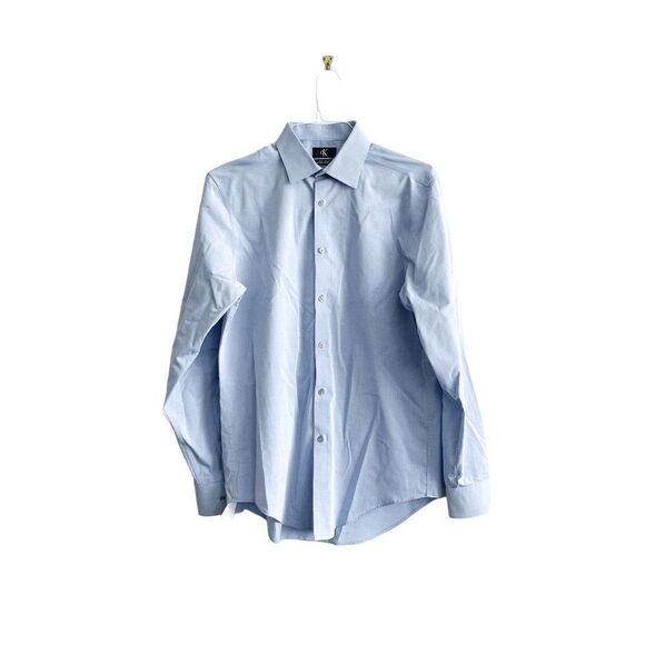 Calvin Klein Mens Slim Fit Non Iron Shirt Button Down Long Sleeve Blue Medium