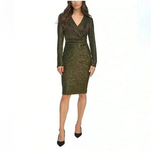 Calvin Klein Metallic Faux-Wrap Sheath Dress sz 12