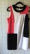 This stylish sleeveless dress features a bold colorblock design in black, white, and pink. Perfect for any occasion, it offers a modern and chic look.