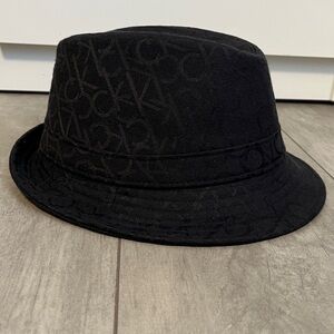 Calvin Klein NWOT Black Monogram Fedora Hat, 24"