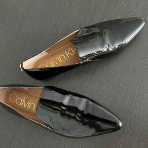 Calvin Klein NWOT Gloss Black Patent Leather Loafers, Women's Size 6.5