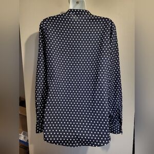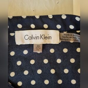 Calvin Klein Navy and White Polka Dot Blouse, Size XS