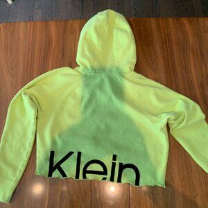 Calvin Klein Neon Green cropped sweatshirt, Sz S, hood, long sleeve,