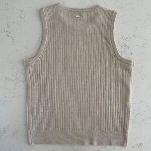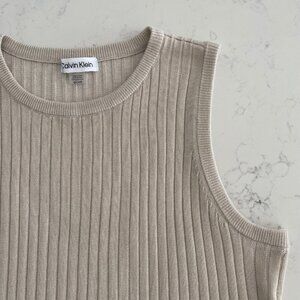 Calvin Klein Neutral Sleeveless Crew Neck 100% Acrylic Ribbed Knit Top in Taupe/Cream NWOT