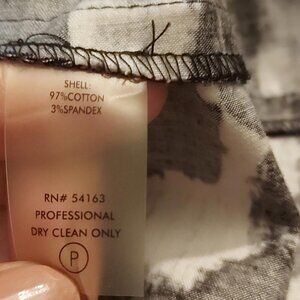 Size 4, cotton 97 %, spandex 3 %, zipper back closure, the measurements: waist 14 inches, bust 16 inches, length 36 inches.