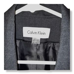 This Clavin Klein Blazer is perfect for your office job or maybe a business trip. It is 64% polyester, 31% Rayon and 3% Spandex.