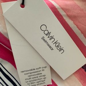 Beautiful One Piece Calvin Klein Bathing Suit with removable straps and cups. Brand new with tags. Multi coloured stripes. Multi wear Strap and UV protection up to 50 SPF, 4 way stretch.