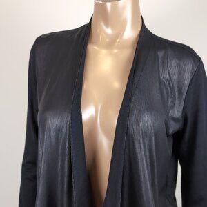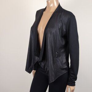 Calvin Klein Open Front Cardigan Faux Leather Draped Zipper Pockets Long Sleeve