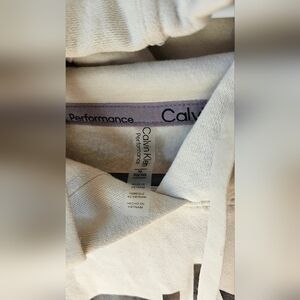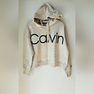 Calvin Klein Performance Hoodie Cropped Short Stone Ivory Cream Size L