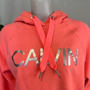 Calvin Klein Performance Hoodie Womens Small Hot Orange Cropped Casual