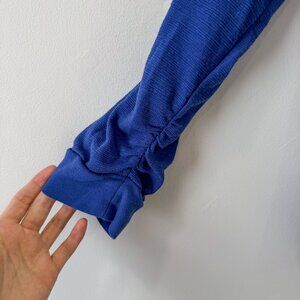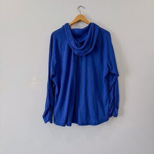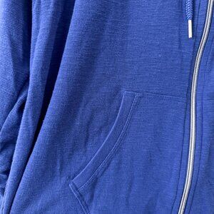 This Calvin Klein Performance zip-up hoodie blends function and flair in a bold cobalt blue. Designed in a soft, lightweight waffle knit, it features standout rouched sleeve detailing, a full front zip with branded metal zipper, and a relaxed silhouette that’s perfect for layering. Whether you're lounging, running errands, or heading to the gym, this hoodie has your back in comfort and style.
