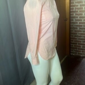 Calvin Klein Pink and White Fitted Long Sleeve Blouse Size XS