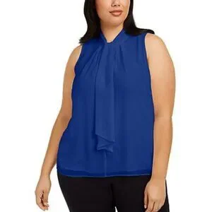 Soft overlays bring dimension and coverage to this plus size sleeveless blouse from Calvin Klein.