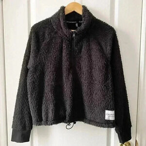 Calvin Klein Plush Sweater Cropped Fuzzy 1/4 Zip Pullover Black Size XL