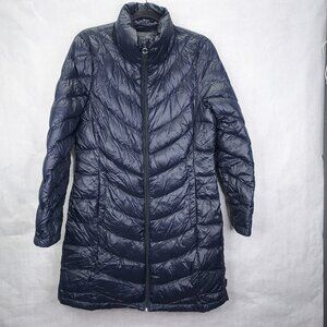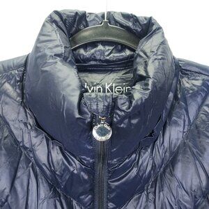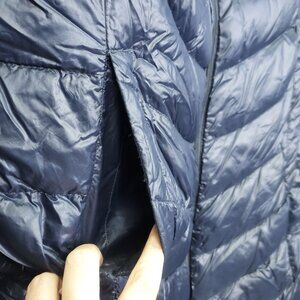 Calvin Klein Puffer Jacket Womens M Premium Down Long Packable Quilted Navy Flaw