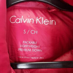 Calvin Klein Puffer Jacket Women's Sm Premium Down Packable Quilted Red Full Zip