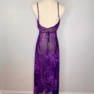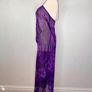 ⋆ Experience ethereal elegance with the Calvin Klein Purple Sheer Nightgown Dress. This long maxi dress features a delicate bamboo leaf print in multiple hues of indigo and pastel purple, creating a dreamy, understated charm. The V-neck front and lace-up back that cinches at the waist add both sophistication and a flattering silhouette. Perfect for a serene, luxurious nightwear option or a graceful evening look.