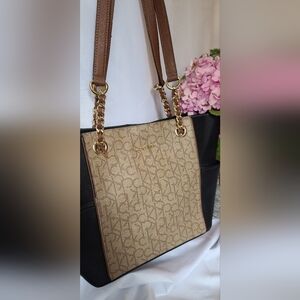 • Signature details on rich faux leather bring sophisticated appeal and contemporary edge to this spacious carry-everywhere tote from Calvin Klein.
