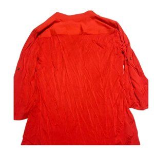 Cute Calvin Klein Blouse. Red button up with pockets. Gently used. Rayon/spandex. Size extra small.