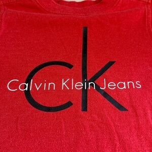Bold red tee featuring iconic black 'ck' logo. Ideal for everyday style.