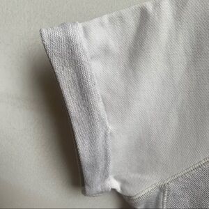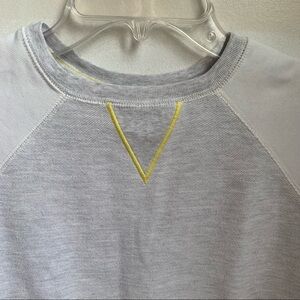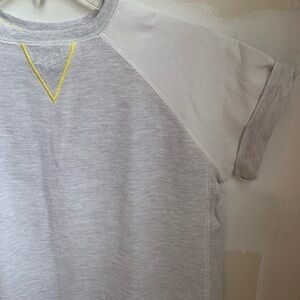 - short-sleeved crewneck sweatshirt with yellow contrast stitching detail at neckline