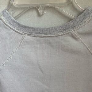 - heathered grey body in front cream sleeves and cream body in back