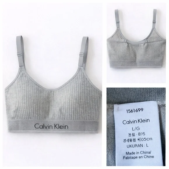🌚 Calvin Klein Ribbed Bralette – Grey | Size L