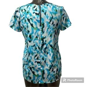 Calvin Klein Round Neck Festive Multi Colour Top Blouse With Black Piping Size Large