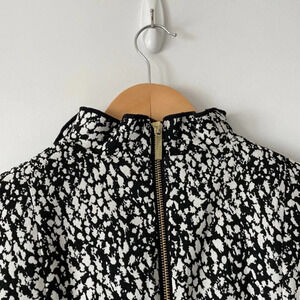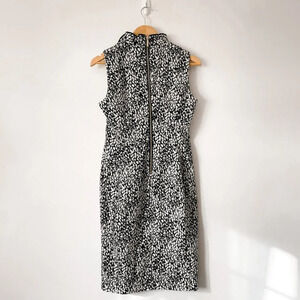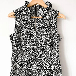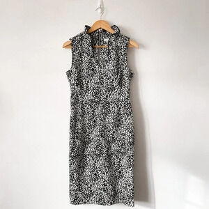 Calvin Klein Ruffle V Neck Sheath Dress Black White Dot Sz 8