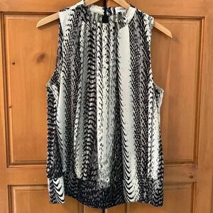 Pretty sleeveless tunic with high neck, back zipper. Size Small.