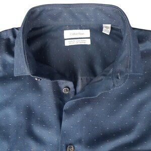 Calvin Klein SZ 15.5 (Med) Regular Fit Men's Blue Non Iron Button Up Shirt