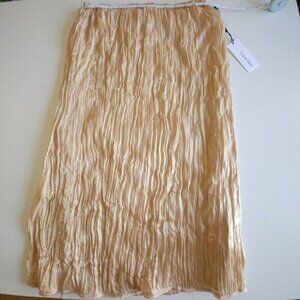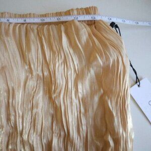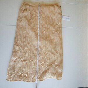 Calvin Klein women's midi pull on shimmery gold pleated crinkle lined skirt