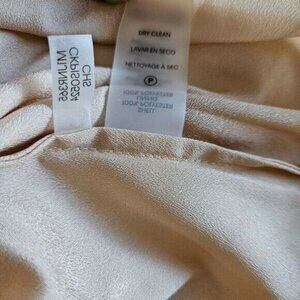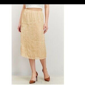 Calvin Klein Skirt Womens M Metallic Gold Shimmery Crinkle Pleated Midi Pull On