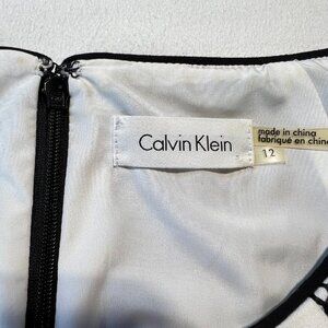 Calvin Klein Sleek Sophistication Colorblock Mesh Sheath Dress size 12 B&W