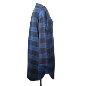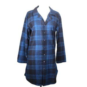 Calvin Klein Sleepwear Women Small Blue Black Pure Flannel Button-Down PJ Shirt
