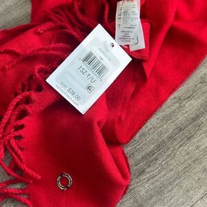 Put a flattering touch on your ensemble with this lightweight frayed scarf. ; Wrap oblong scarf with metallic brand logo adornment. ; Frayed edges. ; 100% acrylic. ; Hand wash cold, line dry. ; Imported. Measurements: ; Width: 11 in ; Length: 67 in.