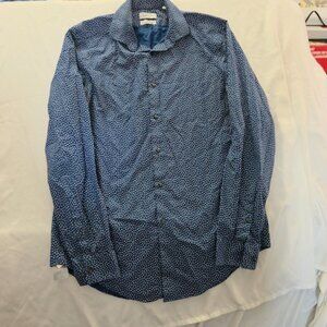 Calvin Klein Steel Slim Fit Non-Iron Dress Shirt Blue Geometric | Men's Medium