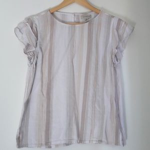 This is a cute neutral colour striped top. It has short ruffled sleeves.