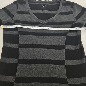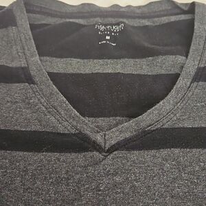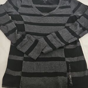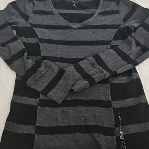 Calvin Klein Stripped Long Sleeves Cotton T-Shirt Medium Black/ Gray