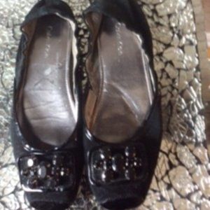Calvin Klein Black Suede flats with patent piping