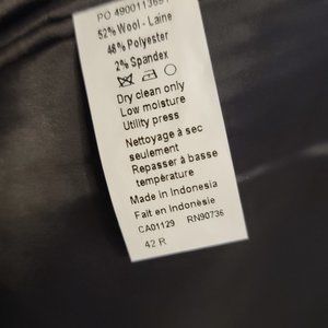 Introducing the Calvin Klein Dark Grey Blazer, size 42R. This sleek and sophisticated blazer combines timeless elegance with modern style. Crafted with meticulous attention to detail, it features a tailored fit that accentuates your silhouette. The dark grey color adds a touch of sophistication to any outfit, making it a versatile wardrobe staple. Whether you're attending a formal event or a business meeting, this Calvin Klein blazer is the perfect choice. Pair it with dress pants, a crisp white shirt, and a stylish tie for a polished and professional look. Available now for you to shop and elevate your wardrobe.