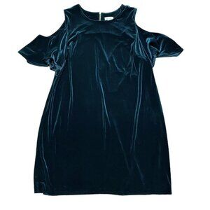 Calvin Klein Sz 22W Dress GREEN Cold Shoulder Velvet Plus Size Classic Party