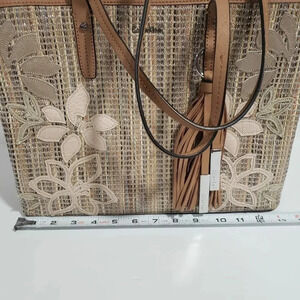 Calvin Klein Tote Bag Brown/Tan With Floral Aplique