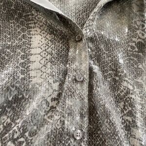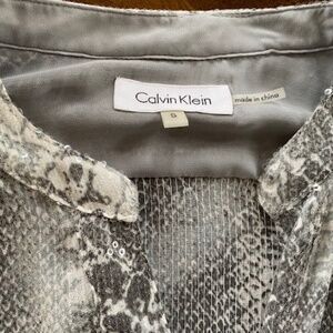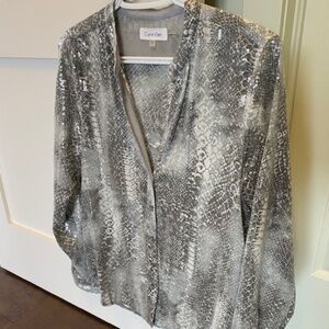 Calvin Klein US S Ladies button-up blouse reptile print grey silver tones shiny