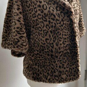 Calvin Klein Ultra Soft Leopard Faux-Fur Shawl-Collar Jacket Elbow Sleeve – US S